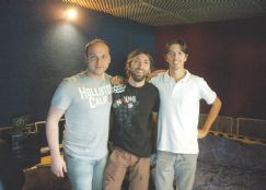 | El grupo junto al productor Vengoechea, en estudio La Púa |