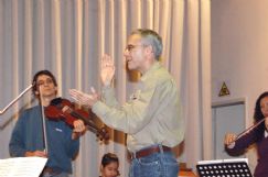 En su tercera visita a la ciudad (las anteriores correspondieron a Encuentros de Orquestas y Ensambles), Sotelo arribó a principios de semana para ensayar con el elenco musical de reciente formación (desde el segundo semestre de 2008), impartiendo sus conocimientos tanto como director al igual que como docente.