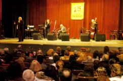 El viernes pasado se realizó la 15º edición de "La noche de Carlos Gardel" en el Teatro Verdi, ante una sala casi colmada. A 75 años de la visita del "zorzal criollo" a nuestra ciudad se celebró una extensa velada (de las 21.30 a las 2 de la madrugada), con la participación de los conjuntos típicos de la ciudad, el reconocimiento de los tangueros históricos y el descubrimiento de una placa recordatoria en el hall de la sala. Con la animación del organizador Renato Sansinanea, desfilaron por el escenario: la solista María Elena, el Tango Trío (conjunto que participó en la primera edición y gestor de las actuales orquestas), el flamante Clave de Tango, Simplemente Tango (ovacionada en "Pregonera" con el dúo vocal Ríos-Casale), A Puro Tango (celebrada en "Canaro en París", "Juventud del ‘40" y "La cumparsita"), el interesante trío de cordobesas Las Rositas y la orquesta de Carlos Nieto. En la danza, actuaron Yanina Zanellato y Alejandro y Germán Macía y sus alumnos, brillando en la coreográfica "Libertango". Respecto a las distinciones, recibieron los "grandes valores": el violinista José Medina y los bandoneonistas: Héctor Cánova y Humberto González.