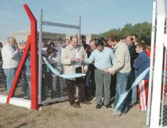 El intendente Eduardo Accastello junto al funcionario Henry Rapetti, más la presencia del presidente de la Liga, Carlos Airaldi, fueron quienes encabezaron el acto de corte de cinta, todos ellos acompañados por Guillermo Morelatto, presidente de Alumni.