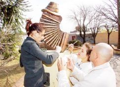 La figura del bandoneón con su fuelle semi contraído coronado con un sombrero, fue instalado ayer por la mañana por el director de Cultura, y también artista plástico, Milton Vázquez junto a María Eugenia "Coqui" Podestá (coordinadora de la escuela municipal artística) y la artista Julieta Barbuio, quien semanas atrás representara a nuestra ciudad, junto a su grupo, en la Bienal Internacional de Escultura en Chaco.