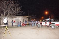 | Policías y curiosos alrededor de la vivienda del joven asesinado el pasado jueves a la noche en barrio Las Playas |