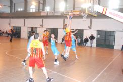| Al aro. El jugador “gallego” intenta conectar una canasta ante una buena defensa de un rival en el partido frente a San Martín |