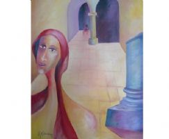 | Una de las obras en exhibición de la artista cordobesa (en un ángulo) |