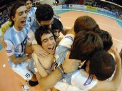 | El festejo de los argentinos luego del triunfo. El primero de la izquierda es el villamariense Andrés Ribone |
