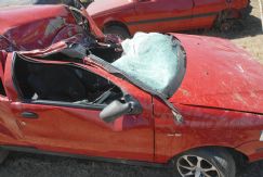 | El estado en el que quedó el automóvil demuestra lo terrible del impacto. Los dos ocupantes murieron casi en el acto |
