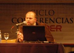 | Hernán Giardini durante la disertación brindada en el salón del Royal House |