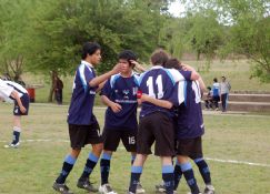 Los chicos de Villa María festejan uno de los dos goles en el partido que jugaron ante la Liga de Laboulaye. En la otra foto, uno de los partidos que terminó sin goles: el que protagonizaron los combinados de las ligas Independiente y Bellvillense