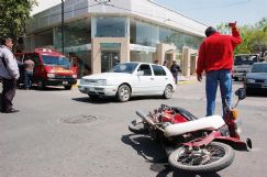 Apenas unos minutos pasadas las 12 de ayer, la esquina de Mendoza y 9 de Julio fue escenario del choque entre una motocicleta Guerrero sin patente y un Volkswagen Gol dominio BIH 782.