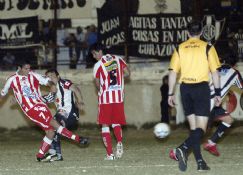 | De derecha. Carlos Herrera saca el remate ante la marca. El delantero espera una buena revancha el domingo, en Salta. (Foto Gentileza de El Liberal, de Santiago del Estero) |
