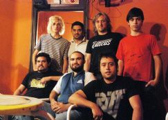 | Parados: Facundo de Marioneta, Manuel de Nauseabundos, Titina Bravín de Motorblues y Lucho de Marioneta. Sentados: Daniel y César de Fuego Combativo y César Toderi de Pixel |