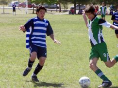 | Escena del partido que por la categoría menor empataron 1 a 1 las ligas de Río Tercero y General Roca |