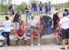 | Tristeza por un lado y expectativa por el otro. Chicos que se lamentan no haber clasificado a semifinales y chicos bajo los árboles siguiendo los partidos |