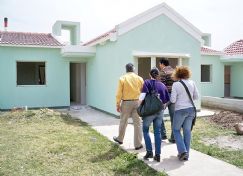 Verónica Colomino, Fabricio Güelfi y Sandra Sgubini verificaron los trabajos del plan “36 Viviendas” y, según dijeron, observaron “un avance del 98%”.