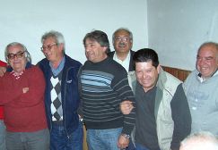| Beltrame, al medio, junto a sus colegas de la Liga Riotercerense, quienes cumplen diferentes funciones en la organización del campeonato |