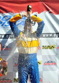 | Renzo Gacé se bañó con champán luego de alcanzar el campeonato |