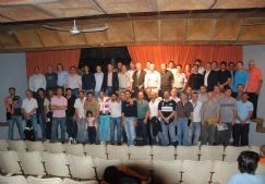 | Todos los jugadores con los dirigentes posaron para EL DIARIO, posterior al sorteo realizado en el teatro del club Sarmiento |