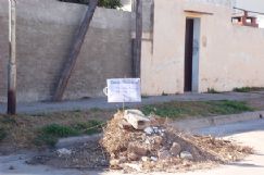 Los vecinos de la calle Ramiro Suárez al 700 le festejaron el tercer cumple mes a un montículo de escombros que se encuentra en el sector. Para la ocasión, los frentistas adornaron la basura acumulada con un cartelito alusivo
