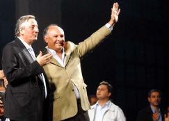 | Néstor Kirchner y Eduardo Accastello saludan desde el palco de Forja y Abuelas e Hijos con Néstor Kirchner |