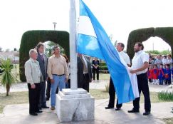 | Las autoridades municipales se encargan del izamiento de la Bandera en la mañana de la jornada festiva |