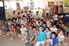 | Integrantes de Ramonda Motors y los niños comparten un momento de recreación y educativo |