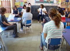 | El taller desarrollado por las integrantes del equipo técnico municipal en violencia familiar se llevó a cabo en el jardín de la escuela “Manuel Belgrano” |