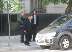 2- Nicolás Bertello conversa con su abogado defensor, el ex fiscal Roberto Vásquez, al salir de la sucursal bancaria donde ayer por la tarde se realizó la inspección judicial de la que tomaron parte funcionarios de la Fiscalía del Segundo Turno