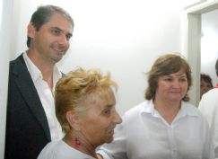 | Cavagnero, en la foto junto a Bossa y una vecina, defendió su decisión de cobrar un porcentaje de la obra de pavimento |