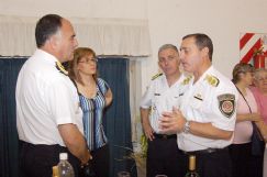 La plana mayor de la Unidad Departamental General San Martín conmemoró ayer el 138º aniversario de la creación de la Policía de la Provincia de Córdoba con un acto que se llevó a cabo frente al edificio ubicado en General Paz 317. La ceremonia fue presidida por el director General de Unidades Departamentales de la Zona Sur, comisario mayor Ramón Angel Frías, quien arribó a Villa María en representación de las máximas autoridades de la fuerza de seguridad que encabeza el comisario General Alejo Paredes. Durante la celebración se dio lectura a una carta enviada por Paredes, mientras que en la parte final hicieron uso de la palabra el titular de la Regional con asiento en esta ciudad, comisario mayor Daniel Oscar Ferreyra, y el jefe policial que vino especialmente para participar del acto. También se recordó a los funcionarios policiales caídos en acto de servicio con un minuto de silencio y el tradicional toque de trompeta, en el que fue el momento más emotivo de la ceremonia. A lo largo de la conmemoración, representantes de diferentes instituciones del medio hicieron entrega de plaquetas recordatorias, alusivas al aniversario de la Policía de Córdoba (que en realidad se cumplió el pasado lunes 16, pero que por razones de organización se pasó para la víspera), y posteriormente se entregaron medallas a los efectivos policiales que cumplieron 30 y 25 años de servicio. La tradicional invocación religiosa estuvo a cargo del presbítero Maximiliano Savoretti. @Ferreyra dijo... Al dar lectura a su discurso, el comisario mayor Ferreyra hizo un racconto de los logros obtenidos a lo largo de los 19 meses que lleva al frente de la Departamental, y en uno de los párrafos más salientes destacó que "el año transcurrido ha sido arduo". "Vivimos en una sociedad democrática, en el pleno ejercicio de las libertades individuales", expresó el jefe policial, y de inmediato agregó: "Nuestra función es velar por ellas, garantizando su derecho y exigiendo en todo momento el cumplimiento de aquello establecido por la ley, amparando a aquellos ciudadanos que la cumplen y aplicando el rigor de las mismas para aquellos que las violentan". Cabe recordar que Ferreyra fue puesto en funciones al frente de la Departamental el 18 de abril de 2008, luego de los ataques a balazos sufridos por el fiscal Francisco Márquez (el día 2 de aquel mes) y el dirigente social Alejandro Roganti (el 14), que terminaron costándole el puesto al anterior jefe, el también comisario mayor Sergio Flores. @Más policías La ceremonia fue cerrada por el comisario mayor Frías, quien en un discurso eminentemente informativo hizo especial hincapié en la incorporación de nuevo personal a la fuerza. El titular de la Dirección General de Unidades Departamentales de la Zona Sur precisó que el 15 de diciembre egresarán cerca de 3.000 policías, quienes se sumarán a los 2.400 que ingresaron el año pasado. Así, a fin de este año habrá alrededor de 19.000 efectivos en toda la provincia, con lo cual se incrementará en casi un 50% el personal, ya que hasta el año pasado había 12.800, según indicó Frías en su mensaje. Asimismo, agregó que a principios de 2010 se incorporarán otros 1.300 efectivos, con lo cual la Policía de Córdoba superará los 20.000 uniformados. @Agape final Luego de la ceremonia, a la que asistieron representantes de la Municipalidad, Poder Judicial, Policía Federal, Fábrica Militar, Juzgado Federal, entidades comerciales e instituciones intermedias, se sirvió un ágape en el Salón Azul, ubicado en el primer piso del edificio policial.