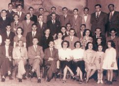 | Gaspar (el sexto de la fila inferior, desde la der.) posando junto con un grupo de alumnos. A la izquierda, Herminio Fossa, fundador de la academia central en Buenos Aires |