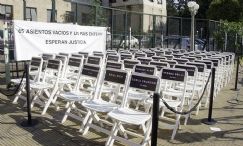 | “65 asientos vacíos y un país entero esperan justicia”, reza el cartel de uno de los numerosos reclamos formulados por familiares de las víctimas, entre las cuales se hallaba Aldo Serrano |