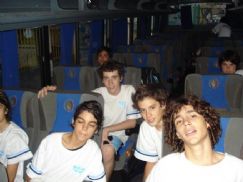 | Algunos de los chicos que integran el plantel de Rivadavia en el colectivo, rumbo al partido. El “canario” puede meterse en semifinales si derrota hoy a Perú |