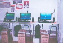 | Las computadoras y un afiche que plasma el agradecimiento de los propios alumnos a Picco |