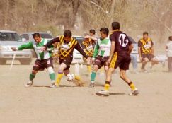 | Un instante del encuentro entre ambos elencos |