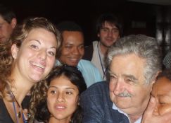 | Melisa Bergia junto a otros jóvenes del Mercosur, saludan al presidente electo de Uruguay, José “Pepe” Mujica |
