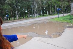 Los profundos baches anegados y las roturas de la calzada, dificultan en extremo las intenciones de los conductores y peatones que pretenden acceder al sector barrial.