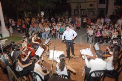 La velada, desarrollada en la plaza Centenario sobre la calle Santa Fe frente a la sede de la obra social empresaria, consistió en la presentación de diversos elencos musicales encabezados por profesores y alumnos del establecimiento de educación musical. Ante una considerable audiencia (ubicada en sillas de plástico), se desarrolló la jornada que iniciara con la orquesta de cuerdas a cargo del docente Fabricio Valvasori. Luego se dejó el espacio a un grupo de alumnos de piano que presentaron sus interpretaciones para luego dar lugar al cuarteto de saxos, coordinado por el profesor Sergio “Pelado” Alonso. Acto seguido se montó el cuerpo coral del Conservatorio, dirigido por Rubén Terreno.