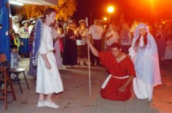 En primer término, hicieron uso del escenario montado en el patio de la institución ubicada en barrio Industrial, el grupo "Quijotadas" que representó, junto a integrantes del Hogar y del Patronato de la Infancia, la peregrinación de María desde Nazareth hasta la ciudad de Belén donde se produjo el nacimiento del Niño Jesús.