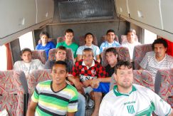 | La delegación de jugadores de Alem que viajó ayer a Monte Buey para disputar su primer amistoso de pretemporada ante Matienzo |