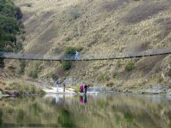 | El puente colgante sobre el río El Durazno. En la población homónima, con cien habitantes, surgen las historias y anécdotas que ellos mismos están siempre dispuestos a contar |