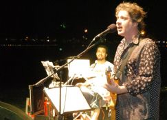 | Cordero en el teclado y Aiello en guitarra y voz. Así actuaron juntos el último domingo de diciembre en la costanera |