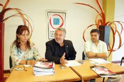 | Barberis, flanqueado por Adriana Rochetti y Darío Poncio, funcionarios del instituto |