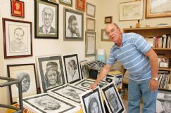 Si bien ha expuesto en La Carlota hace muchos años, luego sus otras ocupaciones lo mantuvieron alejado del lápiz, la goma y el papel, únicas herramientas que usa para crear retratos de personajes y de gente desconocida.