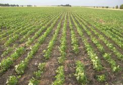 Maíz: El estado fenológico del cultivo predominante en la zona se encuentra entre R2 y R3 (cuaje y grano lechoso) la cobertura del entresurco supera el 90%, son lotes uniformes que presentan un estado general bueno. Las malezas encontradas en el 50% de los casos en niveles de leve intensidad son yuyo colorado (Amaranthus quitensis) y Pie de gallina (Eleusine indica).