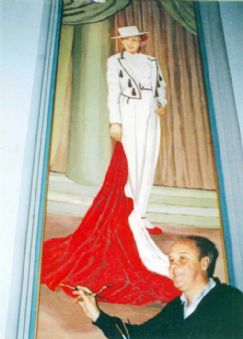 | Las Heras restaurando una de las imágenes del ex Cine Sud |