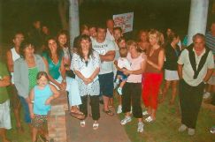 | Los vecinos del CEC que se reunieron por los problemas barriales. Los frentistas han colocado en sus casas compuertas para detener el agua de las inundaciones |