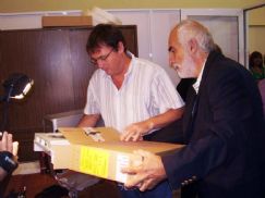 Funcionarios de la Anses Villa María, llevaron a cabo la entrega de las dos primeras computadoras a centros de jubilados. Así lo concretaron el jefe de la unidad villamariense Guillermo Rocha, junto a Andrés Perassi, referente del Organo Consultivo de los Jubilados y Adrián Belfanti, coordinador de Gestión y Beneficiarios.