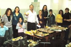 | Las madres de la Cooperadora listas para servir el chocolate y las tortas, se sumó el jefe comunal |