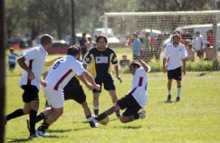 | Al piso. El jugador de Transporte Flavio va con todo el ímpetu. Igual, su equipo perdió 2-1 con Transporte El Diablo Rojo. |