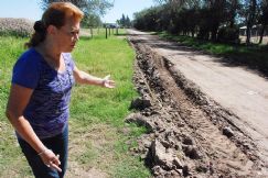 | Una vecina de la calle César Citto, en barrio Las Acacias, muestra lo que el municipio considera es una cuneta. Los reclamos por las reparaciones de las calles del sector cumplieron una década |